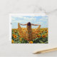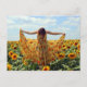 Tjejen i Solros fält med blommorna i fullt blomning. http://frontiernow.com