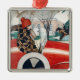 Flickan och en Pug-Hund i en röd bil Julgransprydnad Metall