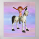 Söten poster med en fin liten pejldocka med flygande svansar/braider på en söt lycklig-häst/pony på en vacker rosa och blå magisk fantasi med roterande stjärnor. Barnen kommer att kärlek de här lycklig-tecknen - en perfekt gåva till flickor!