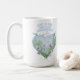 Söt mugg för "Girl WHO Kärlek Dragonflies". Vattenfärgat hjärta i bakgrunden med fyra draketer och en blommigt med blå bokstäver som fästs ovanför hjärtat och dragonfly.