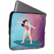 Flickan surfar på solnedgången. laptop fodral