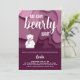 Kute-flickduschinbjudan med en illustration av en liten polar björn på en underbar bakgrund av vågigt rosa. Känslan lyder "vi kan vänta tidigt" och all text är redigerbar. Bilden ser ut i tre dimensioner, men den är bara en utskrift. Illustrerad och designad av Patricia Alvarez.
