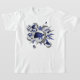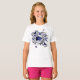 Den här coolan-flickans t-shirt-skjorta har en "explosion" av olika storleka basketbollar som har alternerande blått, grått och vita färgade paneler och blå, grått och vita stjärnformer - anpassa med idrottsmannens monogram- eller jersey-nummer - design finns på framsidan av t-shirt men kan flyttat till eller dupliceras på baksidan - av katz_d_zynes