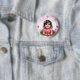 Mormor att vara knapp. Knappen för spädbarnsdusch i personlig med en söt mörk som färgade flicka med en rosa blomma i håret, bakgrunden till blommigten för Söt rosa med rosa text.