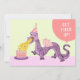 Den ursprungliga födelsedagskalkern "Get Fired Up" draken på party inbjudan, som har en rolig rosa och lila-branddragon.
