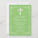 Vår vackra kor-baptisminbjudan eller julklappningsinbjudan har en vindruvskänslig ram i Snyggten som omger ett vitt kor med ett tryckt pärlbågset på en grönt i vår. Besök vår butik för denna inbjudan i ett stort urval av modernt och trendig färger och för att se vårt urval av inbjudningar till religiösa för en flickobaptism eller en pojkars baptism.