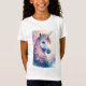 Flickans t-shirt med en majestät enmajsbakgrund i en drömmande bakgrund av mjuk pastel färg med en blommande mane försedd med ömtåliga blommor, skapande en förtjusande scen.