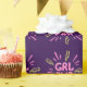 Flickans feministiska slogan, violett bakgrund. presentpapper