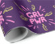 Tjejströrelse. Feministisk slogan pwr på violett bakgrund. Feministisk rörelse, protestaktion, flickmakt. Vintage illustration Girls-regeln, Grl Pwr-vibes. Rosa och vintage. Flickelkraftsrörelse mot bakgrund av våld. Feministisk illustration: makt, flicka, rörelse, rosa, 90-tal, tecknad, girighet, illustration, bakgrund, deka, mode, vintage, tecknad, poster, frimärke, kvinnor, bricka, doodle, frihet, feminin