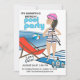 Flickan Låt oss Simma, bassäng festinbjudan på födelsedagen. Det här är perfekten inbjudan för vilken flicka som helst. Det är en flicka i strimlad bad som vilseleder vatten från sitt hår, liksom en simmande bassäng, bassäng stol och strandduk.