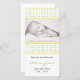 Låt dina vänner och din familj få veta allt om ditt nya glädjespaket med detta söta och snyggt födelsemeddelande. Anpassa det här fotokortet med ditt baby-foto och information.