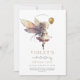 En förtrollad älgfågel-saga födelsedagsfest inbjudan. Den här vackra, målade inbjudan innehåller en mejeripaxie i mjuka vattenfärger i söt, med skripttyp i färg. Magisk och spännande. Anime stil. Guld glitter faux foil på baksidan av inbjudan.