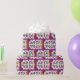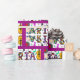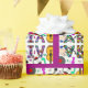 Lila, Rosa, Grönt, Röd, Blå flickans namn Aria-dagspressning med musik noter, gitarrer, album och vita blommor.