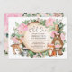 Hon vänder VILDEN EN! Fira din lilla födelsedag med den här visuella skogen på födelsedagsinbjudan. Utformningen omfattar en grupp admatabla skogsdjur (björn, räv, hjort, uggla, mårkoon), blommor från söt rosa och vattenfärgsgrej.