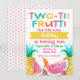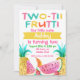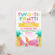 Den här färgglada Two-Tti Frutti-inbjudan till 2-årsdag är ett bra sätt att inbjuda gäster i tvåårsåldern till hennes fest. Designen visar två pinapplar, skivor av vattenmelon, en banan och jordgubbar. Bakgrunden är vit och baksidan av inbjudan har ett rosa prickmönster. Den här flick-inbjudan till 2-årsdag med akvarellmotiv av two-tti frutti är redo att anpassas. Fler mönster med detta tema finns i butiken.