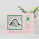 Söt och modern födelseannonsering för skottår. Idealisk kort för att tillkännage en babys födelse på skottdagen 29 februari. Har en söt groda för att symbolisera skottår och det står "Skottårsbarn". Lägg till ett färgat eller svartvitt foto av barnet. Födelsedetaljer kan läggas till längst ner. Rosa och grön färgpalett idealisk för en flicka.