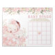 Flickbabykalas bingo anteckningsblock med söt akvarell babyflicka på en rosa och guld akvarell blommig och prickig bakgrund. Du kan lägga till text för att anpassa.