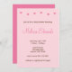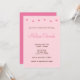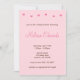 rosa hjärtan hänger uppifrån på en ljusare rosa bakgrund. En enkel och söt rosa och brun duschinbjudan.