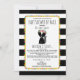 En social-avstånd barndusch med en e-postinbjudan som innehåller en illustration av en skunk av baby och en originaldikt. Anpassa texten. Bakgrunden är svart och vit rand