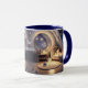 Den här mugg har en sagolmotiv av en liten flicka som bad i sängen precis innan hon somnade. Måne och stjärnor skiner in i hennes rum. Lite magi, lite saga, lite nostalgi, lite hoppfull kom här i bild. En underbar, personlig gåva till alla som kärlek drömmer om och till alla barn!