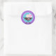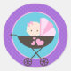 Flickdocka Födelsedag Klassiska Cirkulära Klistermärken i Lila, Rosa och Turkosblå.