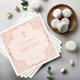Flickdop baptism ljusröd elegant rosenguld blad pappersservett