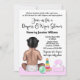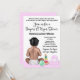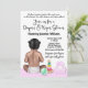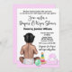 Dammande babyduschinbjudan med sött flicka med leksaker på en söt rosa punktbakgrund.