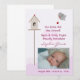 Rosa och vit fågelbo flickebarn fotografiram födelseannonser.