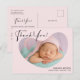 Fira ankomsten av bebisen med detta hjärtliga tackkort! Med en mjuk, pastelldesign och ett charmigt bebisttema, uttrycker detta kort tacksamhet för vänliga ord, varma önskningar och genomtänkta handlingar. Perfekt för att dela glädjen över en nyfödd flicka, är det ett vackert sätt att tacka nära och kära för deras stöd under denna speciella tid.