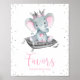 Flickelefantbabygille presentbordsskylt med söt prinsessa-baby elefant på silver glitterbakgrund. Denna söta flickelefantbabygille presentbordsskylt kan sättas i en 8x10 tum ram och placeras på bordet.