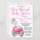 Kör genom babyduschinbjudan med söt rosa bil och ballonger på rosa och vit prick. Den här söta enheten genom babyduschinbjudan är lätt att anpassa för din händelse genom att helt enkelt lägga till din händelseinformation.