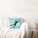 Honlig fotbollsspelare silhuette dekorativ kudde med svart och vit grafik av silhuett med en tjej som sparkar en fotboll för mål som läggs ovanpå ord "mål" - välj ANY bakgrundsbild färg (visas här i aqua) och anpassa namn och jersey-nummer - efter katz_d_zynes