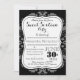 En söt Dag för Döden kattunge på en klassisk födelsedagsinbjudan, med en svart och grå damaskmönstrad bakgrund. Med en stilren typsnitts text, lägg till din information på denna anpassningsbara svarta mall. Designad för en söt 16-års födelsedagsfest. Grattis på födelsedagen!