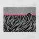 Flickigt glitter silver rosa zebra lägg till din i vykort