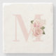 Flickigt rosa guld glitter blommig monogram i past stenunderlägg