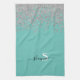 Flickigt silver och tealmonogram akvamarinfärg gla kökshandduk