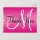 Flickigt varmt rosa glitter Ombre Monogram Tack Vykort
