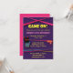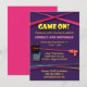 En rolig laser tag-inbjudan som säger Game On! Neonfärger, laserstrålar, faserpistol och västar avbildas. Det lila och rosa temat gör det extra feminint. Anpassa denna inbjudan för en flickas födelsedagsfest.