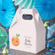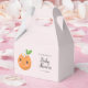 Kort för tickbabydusch med en illustration av en mandarin-orange med en vit blomma på huvudet och ett sött blåsljud. Perfekt för en flickas babydusch.