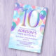 Flickor 10-årsdag regnbågsballonger inbjudan