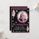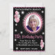 Personlig födelsedags inbjudan för flickor 11 år med foto, varmt rosa och svart