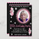 Personlig 12-års inbjudan för flickor med foto i varmt rosa och svart