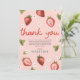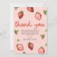 Den här söta och fantasifulla designen för flickors första födelsedagstak tackar innehåller förtjusande rosa jordgubbs- och blomillustrationer och kan anpassas med ditt eget tackmeddelande. "Berry first"-designen har också ett matchande rött rutmönster på baksidan. Den perfekta bärodlingdesignen för din lilla älsklings födelsedag!