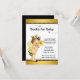 Ta med ett bröllopspresentkort för bebis med söt brunett bebis som bär en söt humleklänning på en fin svart och guld bakgrund med flygande humlor. Du kan anpassa detta ta med ett bröllopspresentkort för bebis med dina detaljer i den typsnittsstil och formulering du väljer.
