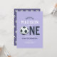 Den här barnens inbjudan till första födelsedag innehåller en lila sportdesign, med en söt fotbollsboll som skapar "ONE" och ett matchande mönster på baksidan. Inbjudan kan vara personlig med dina flickor namn och andra detaljer som behövs för party.