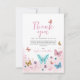 Tack vare den här söta och giftiga babyduschen har du en magisk rosa vattenfärgsfjäril med fjärilar och blommor, med en passande blommigt-fjäril på baksidan, och kan vara personlig med ditt eget tackmeddelande i en vismisk typografi. Utformningen av lila och rosa för perfekten för party.