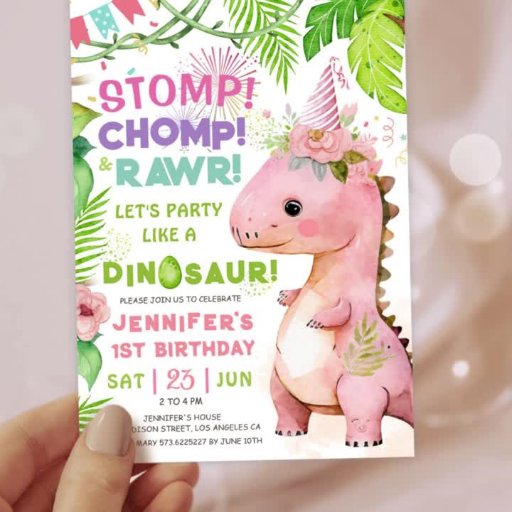 Girls Pink Dinosaur 1st Birthday Party Designad av H-Art Studio Design