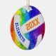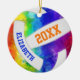 Den här roligtens volleyball-teman med prydnadsföremål har en realistisk tittar volleyball med en färgstark regnbågsövertoning och vita paneler - anpassa med idrottsmannens namn och år på ornamentens framsida och baksida - av katz_d_zynes