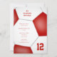 Den här sportiska fotboll som kallas födelsedagsfest inbjudan för pojkar eller flickor har bilden av en abstrakt överdimensionerad röd och vit fotboll som du kan anpassa alla detaljer om party - av katz_d_zynes