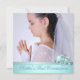 Flickor Foto Tealblå Första Kommunion Inbjudningar